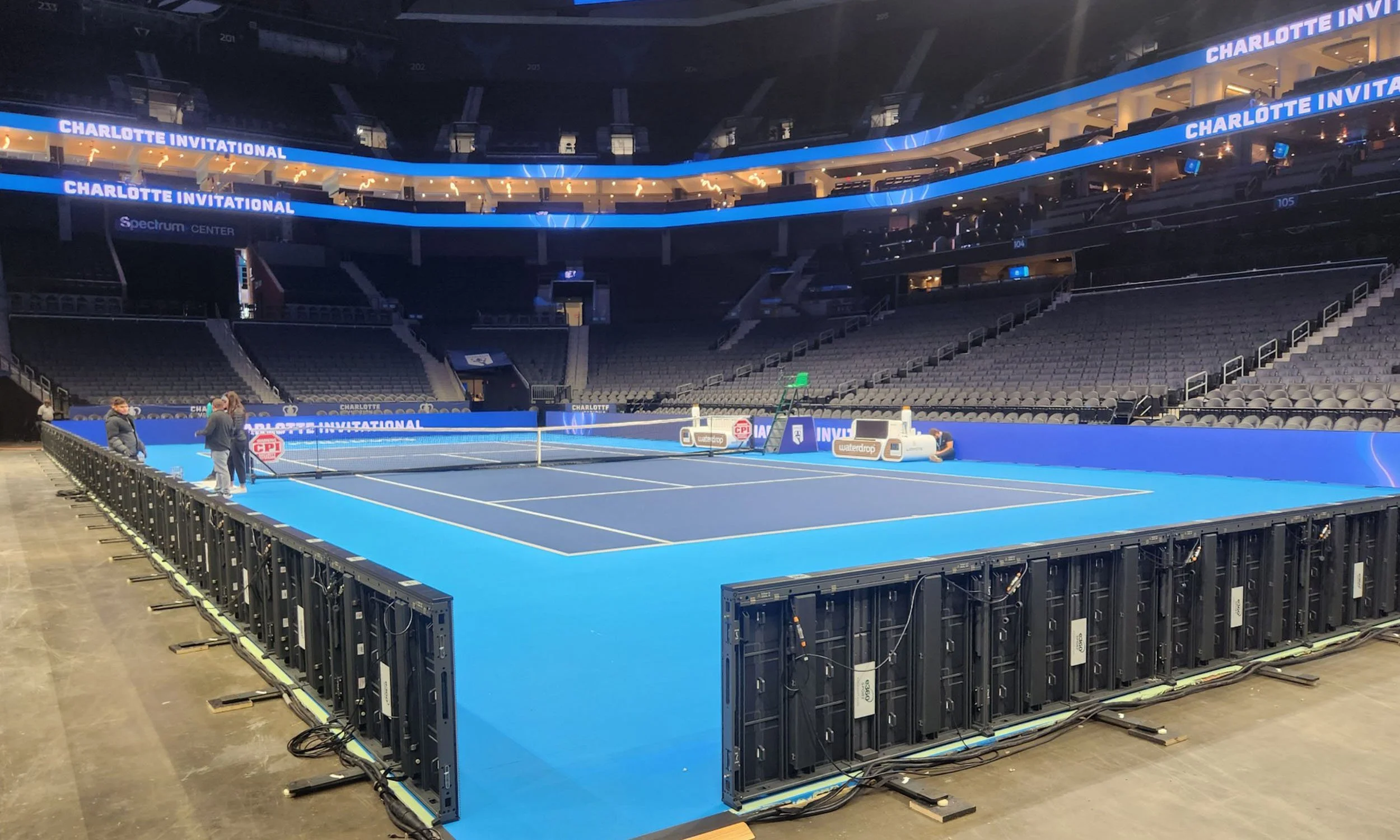 Over the years we’ve developed a very streamlined system for every detail of these installations: how the trucks are packed, how we stage the materials, where we start and finish, how we handle nets and accessories. Because it’s not just us working – these installations happen alongside TV crews, LED-wall teams, arena staff and others, so our process needs to be efficient and predictable.